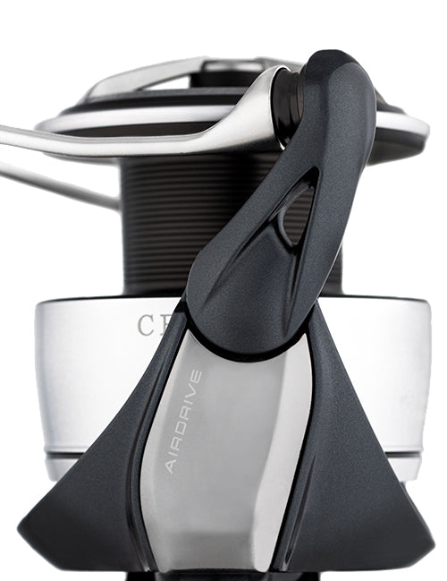 Daiwa's new Airdrive Design, a four pillar (Airdrive Rotor, Airdrive Bail, Airdrive Spool, and Airdrive Shaft) design concept that reduces weight, and enhances rotational smoothness and responsiveness to create a reel that is next level in both form and function.